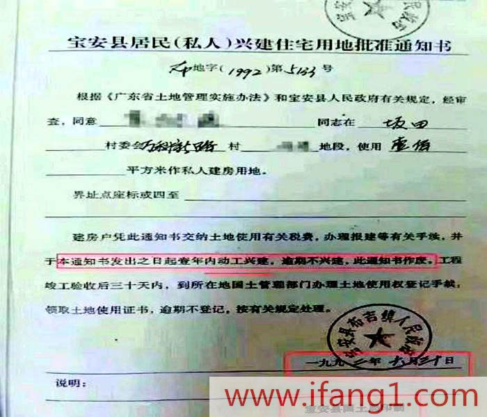 《寶安縣居民(私人)興建住宅用地批準(zhǔn)通知書》目前市面上常說的是“兩